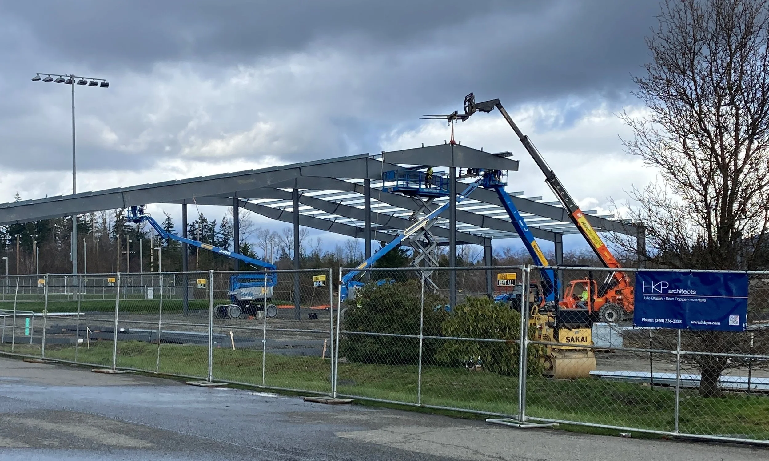 Five truckloads of steel building components recently arrived at Skagit Valley College, where the school’s charitable foundation is spearheading what is likely the area’s first pickleball pavilion. The 25,000-square-foot pavilion is being built in the college’s east overflow parking lot, north of East College Way. It displaces 69 parking stalls, but 43 stalls will be added back by restriping parts of the existing campus parking lots.