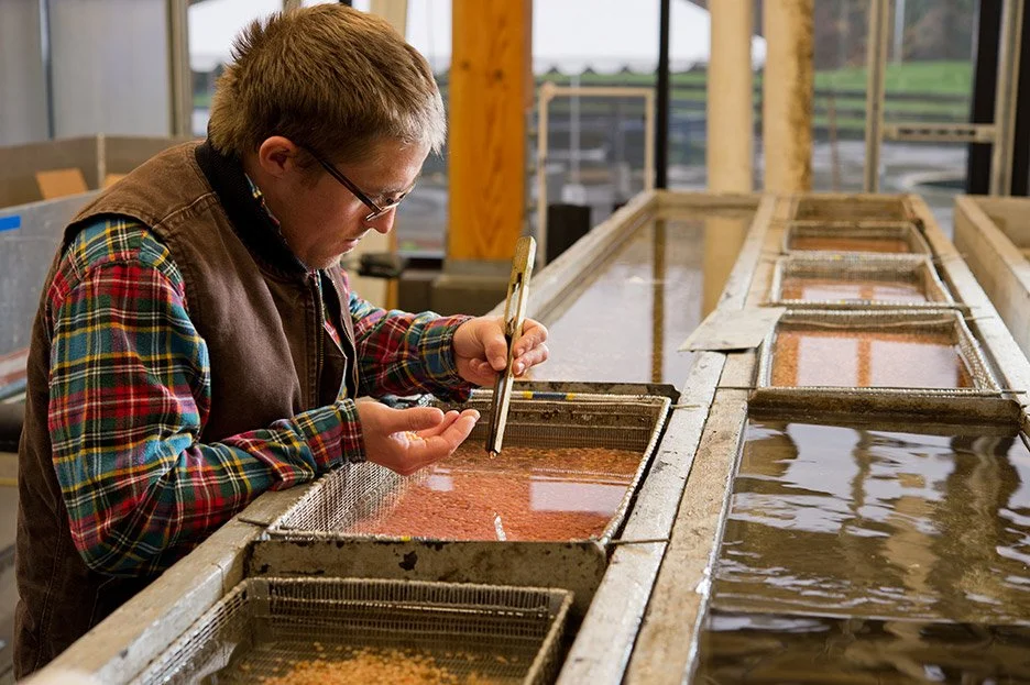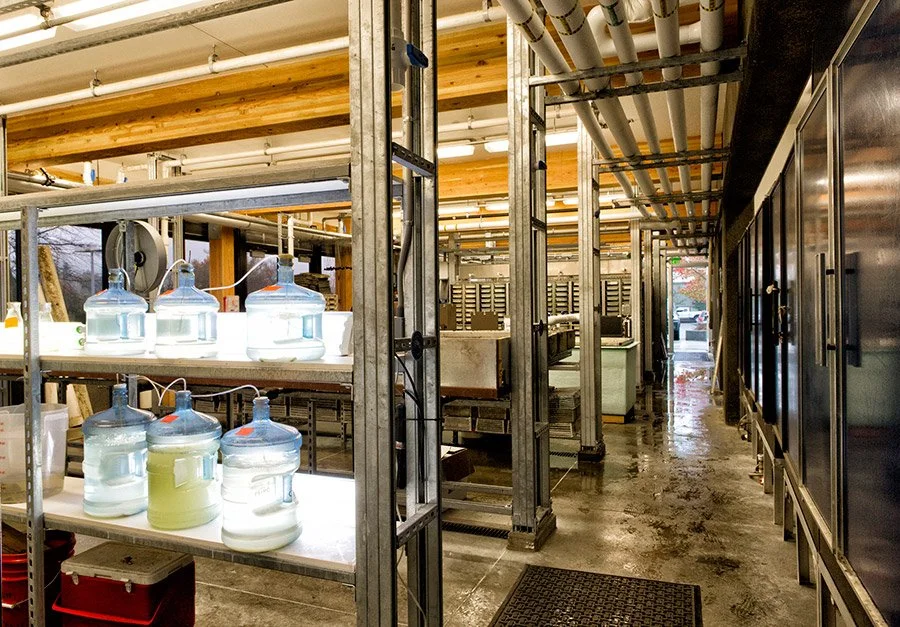 This project replaced the building at the Whatcom Creek hatchery, which was constructed in 1947 as a wastewater treatment plant and converted to a hatchery in 1978. The facility is owned by the City of Bellingham and is leased to Bellingham Technical Center for the Fisheries and Technology program. The former hatchery building was severely inadequate in meeting the instructional needs of the BTC program and had serious structural and settlement problems. As a result, necessary improvements for the old facility were not feasible.