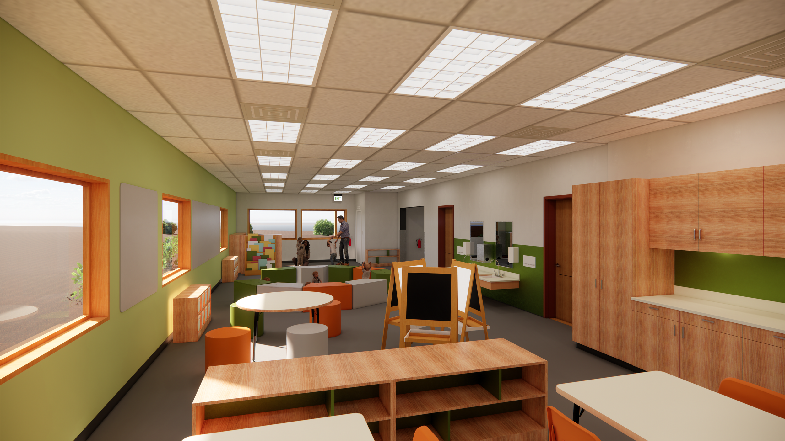 HKP Architects worked with Skagit/Islands Head Start on reimagining an existing two-story office building as the new Oak Harbor Head Start Early Learning Center. The project consists of a 5,535 square-foot first floor that accommodates classrooms, controlled entry, offices, restrooms, and a kitchen. A 1,441 square-foot second floor consists of a staff lounge and additional staff offices; renovation of the second floor was not included in the project due to budget constraints.