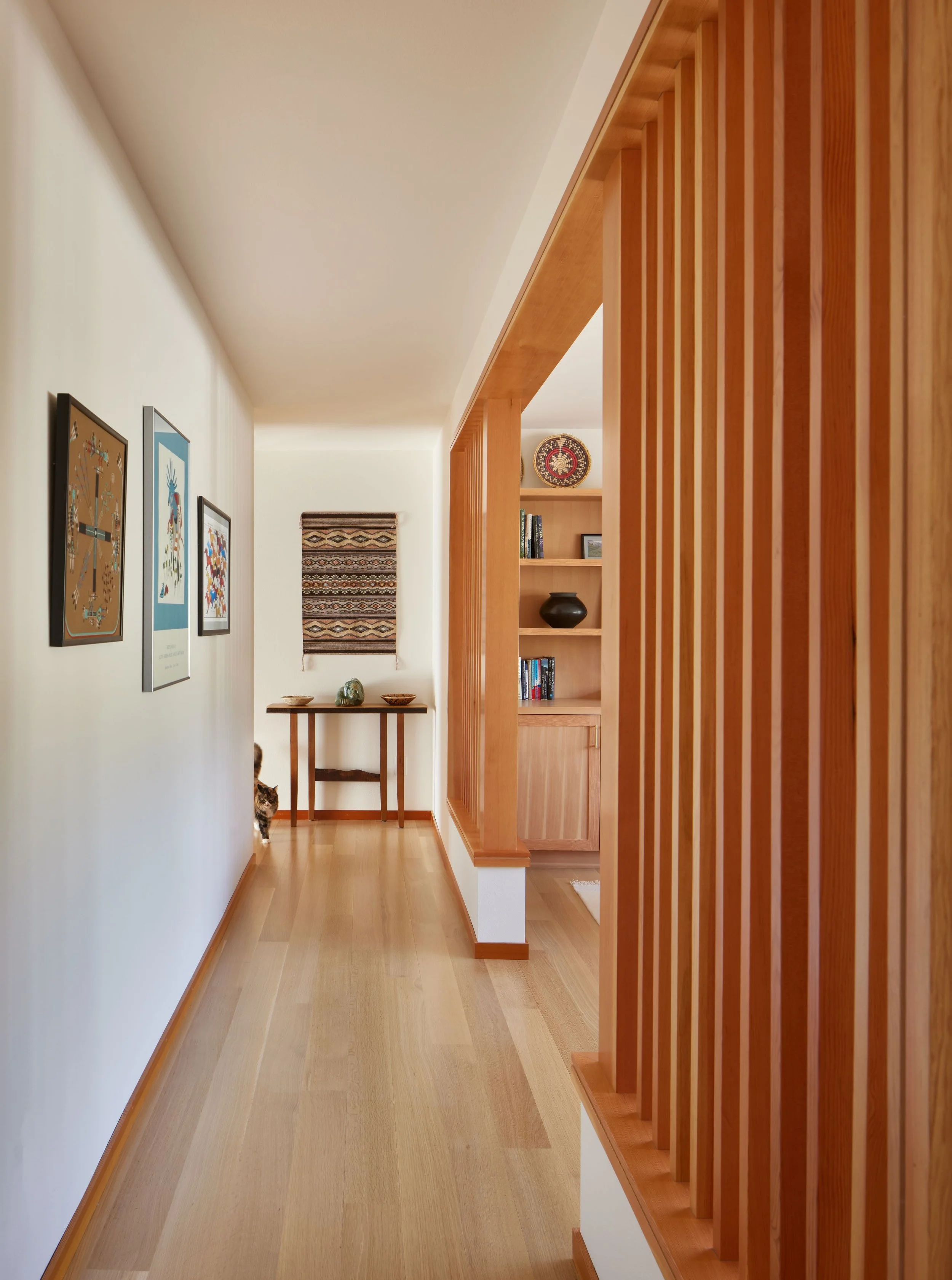The project also includes new hardwood flooring throughout and a new deck extension on the west side, improving the connection between indoor and outdoor environments. Continuous mineral wool insulation board on the exterior of the addition, electric radiant floor heating, and energy efficient windows will help keep the indoor environment of the addition comfortable.