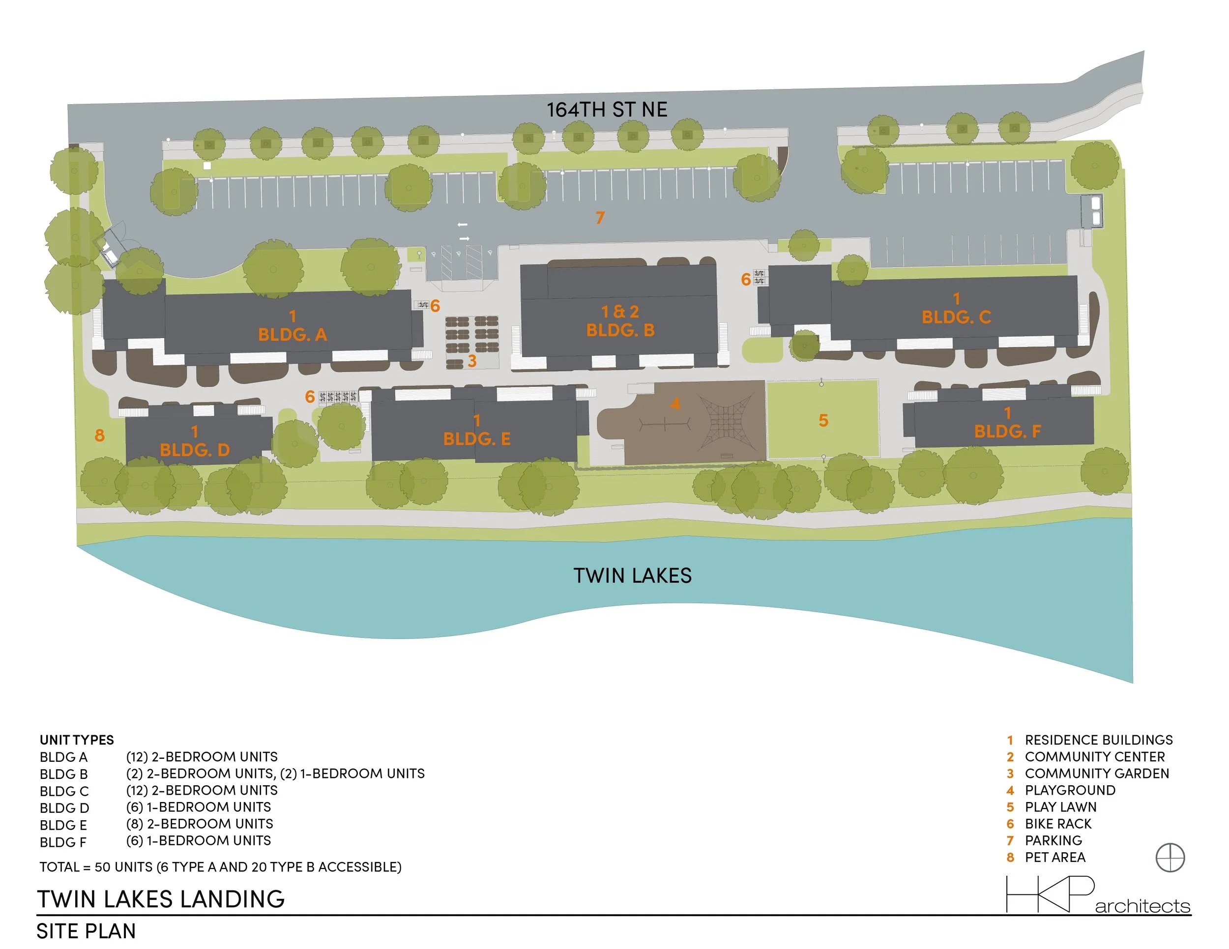 This modular project built on the shores of Twin Lakes in Marysville is home to 50 families who were previously homeless. Designed for Housing Hope as a GC/CM contracting project in collaboration with Designs Northwest, HKP Architects created a new community for families to enjoy their own permanent housing and take advantage of Housing Hope’s educational and childcare programs. The site includes a community garden, children’s play area, interior courtyards and lawn space. Views of the water are emphasized in the communal areas as well as the southern facing units. Built to Evergreen Sustainable Design Standards, this project is energy efficient and utilizes sustainable materials throughout.